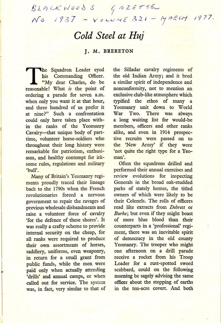 Major MILEHAM’s splendid book illustrates most comprehensively how over the last 190 years large numbers of yeoman have voluntarily agreed to forego part of their personal freedom so at to defend national freedom.”