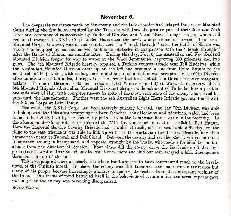 'The Palestine Campaigns’ by Colonel A.P. WAVELL, C.M.G., M.C. third edition with 20 maps was published in 1921. ‘The Affair at Huj’ 8th November 1917 is covered in some