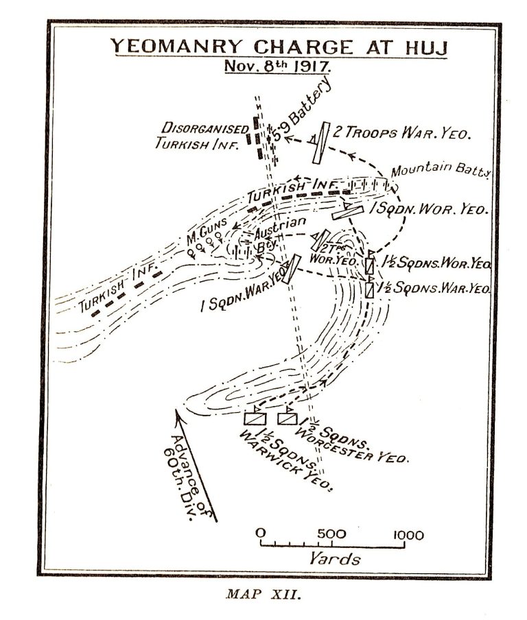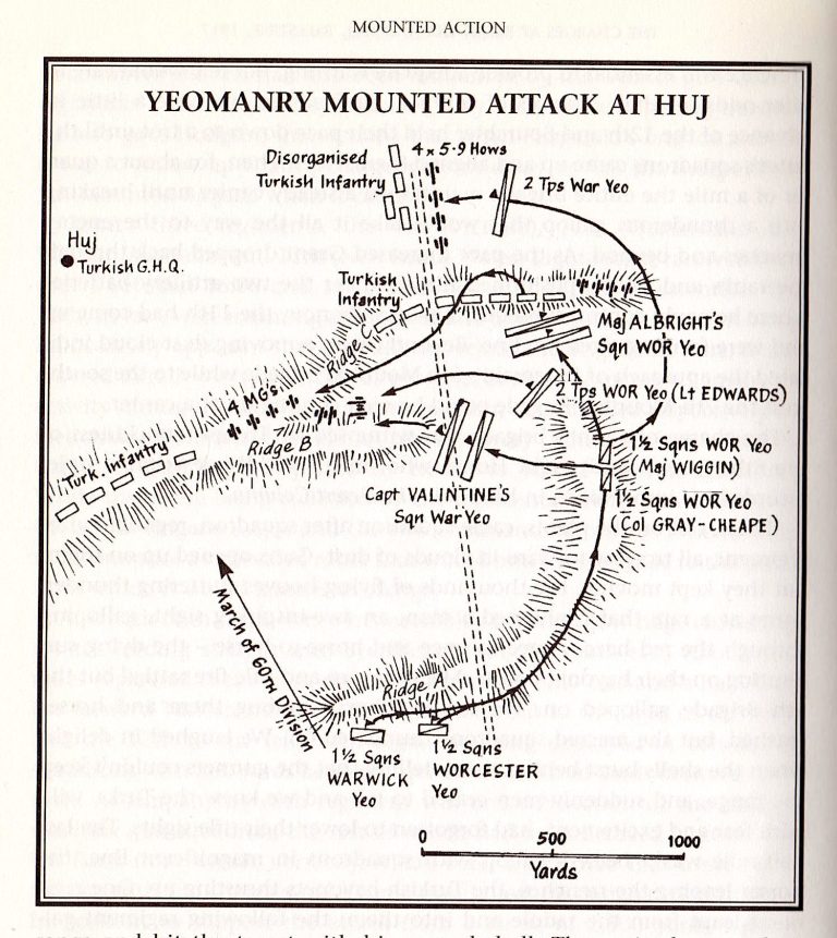 This book is well worth reading - Chapter V includes a short two page account of ‘The Affair at Huj 8th November 1917’ of which the following is an extract: