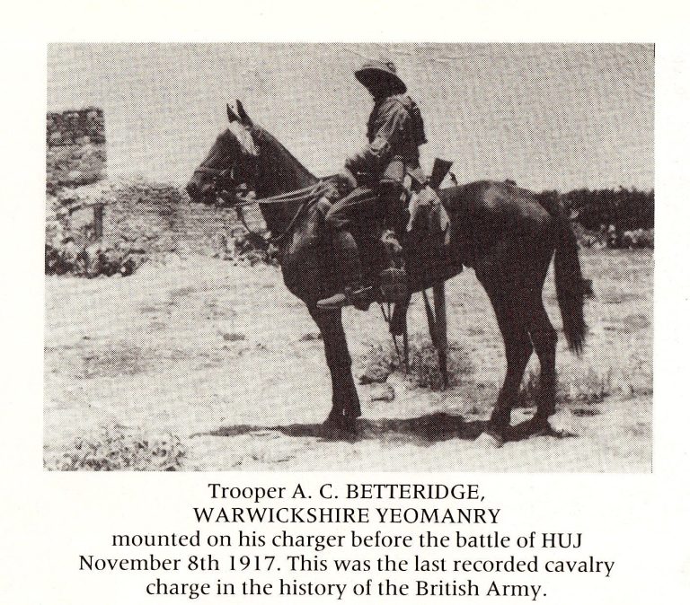 Captain Oskar TEICHMAN was the Medical Officer for The Queen’s Own Worcestershire Hussars. This diarised book provides a fascinating glimpse into the past and includes his account of the Charge at Huj 8th November 1917, of which the following is but an extract: