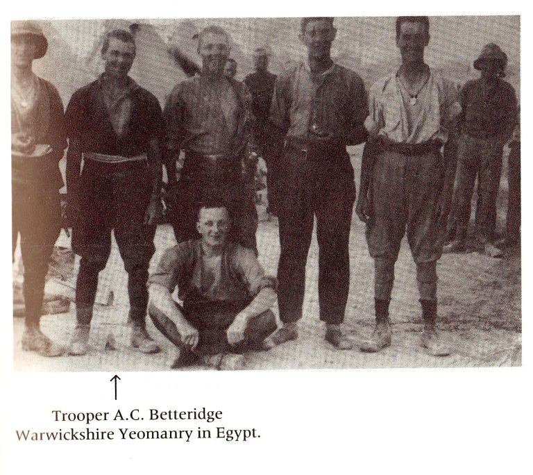 In April 1915 the Regiment went to Egypt and in August of that year 2/3rds of the Warwickshire Yeomanry went to Gallipoli whilst the remaining 1/3rd looked after the horses in Egypt, this 1/3rd later became a composite Regiment fighting the Senussi in the Western Desert.